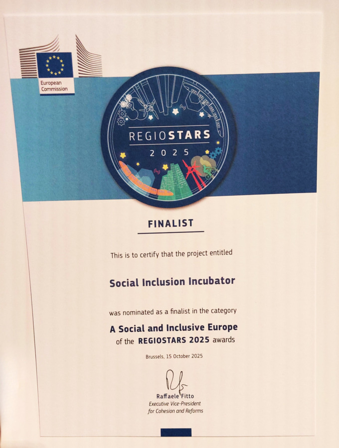 Inkubator Włączenia Społecznego (Social Innovation Incubator) znalazł się w ścisłym finale konkursu REGIOSTARS Awards 2025 – prestiżowej inicjatywy Komisji Europejskiej i Europejskiego Komitetu Regionów, promującej najbardziej innowacyjne i inspirujące projekty realizowane w ramach polityki spójności UE.