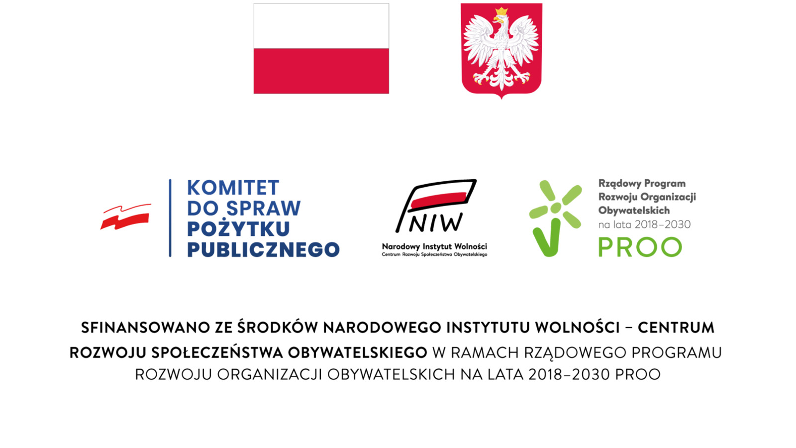Projekt finansowany jest ze środków Narodowego Instytutu Wolności – Centrum Rozwoju Społeczeństwa Obywatelskiego w ramach Rządowego Programu Rozwoju Organizacji Obywatelskich PROO na lata 2018–2030.