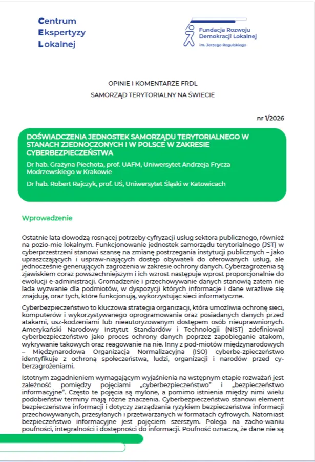 DOŚWIADCZENIA JEDNOSTEK SAMORZĄDU TERYTORIALNEGO W STANACH ZJEDNOCZONYCH I W POLSCE W ZAKRESIE CYBERBEZPIECZEŃSTWA