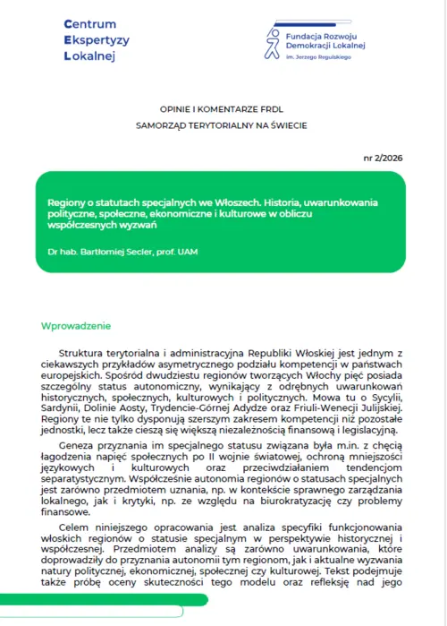Artykuł analizuje włoskie regiony o statutach specjalnych (Sycylia, Sardynia, Dolina Aosty, Trydent-Górna Adyga, Friuli-Wenecja Julijska), ukazując ich genezę, podstawy prawne oraz współczesne wyzwania. Celem pracy jest ocena skuteczności autonomii w kontekście politycznym, społecznym, gospodarczym i kulturowym.